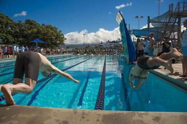 | Keywords: Rim of the Pacific (RIMPAC) 2014 Swim Meet 140630-N-PX130-128.jpg en Two service members enter the water at the start of the men's 50 meter freestyle event during the Rim of the Pacific RIMPAC Exercise 2014 swim meet Twenty-two nations more than 40 ships and submarines more than 200 aircraft and 25 000 personnel are participating in RIMPAC exercise from June 26 to Aug 1 in and around the Hawaiian Islands The world's largest international maritime exercise RIMPAC provides a unique training opportunity that helps participants foster and sustain the cooperative relationships that are critical to ensuring the safety of sea lanes and security on the world's oceans RIMPAC 2014 is the 24th exercise in the series that began in 1971 U S Navy photo by Mass Communication Specialist 1st Class Daniel Gay/Released 2014-06-30 Petty Officer 1st Class Daniel Gay https //www dvidshub net/image/1430435 140630-N-PX130-128 2014-07-01 15 31 JOINT BASE PEARL HARBOR-HICKAM HI US PD-USGov-Military-Navy Sports at Pearl Harbor Swimming in Hawaii RIMPAC 2014 Images from DoD uploaded by Fæ |