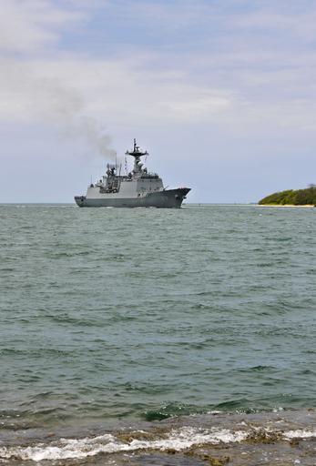 Keywords: RIMPAC 2014 140520-N-WF272-013.jpg en The South Korean destroyer Wang Geon DDH 978 arrives at Joint Base Pearl Harbor-Hickam Hawaii May 20 2014 in preparation for the Rim of the Pacific RIMPAC 2014 exercise RIMPAC is a U S Pacific Command-hosted biennial multinational maritime exercise designed to foster and sustain international cooperation on the security on the world s oceans U S Navy photo by Mass Communication Specialist 3rd Class Diana Quinlan/Released 2014-05-20 Petty Officer 3rd Class Diana Quinlan https //www dvidshub net/image/1358508 140520-N-WF272-013 2014-05-22 08 02 JOINT BASE PEARL HARBOR-HICKAM HI US PD-USGov-Military-Navy Foreign warships at Pearl Harbor RIMPAC 2014 Images from DoD uploaded by Fæ |