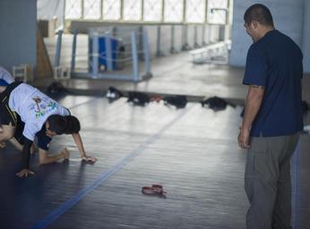 | Keywords: RIMPAC 2014 VBSS training 140702-N-PX130-024.jpg  en Japan Maritime Self-Defense Force sailors from JS Kirishima DDG 174 and JS Ise DDH 182 practice physical training and defense tactics while an instructor from the Center for Security Forces Detachment Pearl Harbor watches during Rim of the Pacific RIMPAC Exercise 2014 The world's largest international maritime exercise RIMPAC provides a unique training opportunity that helps participants foster and sustain the cooperative relationships that are critical to ensuring the safety of sea lanes and security on the world's oceans Twenty-two nations more than 49 ships six submarines more than 200 aircraft and 25 000 personnel are participating in RIMPAC U S Navy photo by Mass Communication Specialist 1st Class Daniel Gay/Released 2014-07-02 Petty Officer 1st Class Daniel Gay https //www dvidshub net/image/1434317 140702-N-PX130-024 2014-07-03 23 44 JOINT BASE PEARL HARBOR-HICKAM HI US PD-USGov-Military-Navy People at Joint Base Pearl Harbor-Hickam JS Ise DDH-182 RIMPAC 2014 Images from DoD uploaded by Fæ |