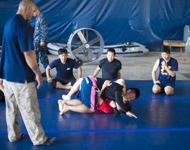 | Keywords: RIMPAC 2014 VBSS training 140702-N-PX130-042.jpg  en Japan Maritime Self Defense Force sailors from JS Kirishima DDG 174 and JS Ise DDH 182 practice physical training and defense tactics while an instructor from the Center for Security Forces Detachment Pearl Harbor watches during Rim of the Pacific RIMPAC Exercise 2014 The world's largest international maritime exercise RIMPAC provides a unique training opportunity that helps participants foster and sustain the cooperative relationships that are critical to ensuring the safety of sea lanes and security on the world's oceans Twenty-two nations more than 49 ships six submarines more than 200 aircraft and 25 000 personnel are participating in RIMPAC U S Navy photo by Mass Communication Specialist 1st Class Daniel Gay/Released 2014-07-02 Petty Officer 1st Class Daniel Gay https //www dvidshub net/image/1434319 140702-N-PX130-042 2014-07-03 23 44 JOINT BASE PEARL HARBOR-HICKAM HI US PD-USGov-Military-Navy People at Joint Base Pearl Harbor-Hickam JS Ise DDH-182 RIMPAC 2014 Images from DoD uploaded by Fæ |
