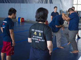 | Keywords: RIMPAC 2014 VBSS training 140702-N-PX130-095.jpg  en Japan Maritime Self Defense Force sailors from JS Kirishima DDG 174 and JS Ise DDH 182 watch a defense tactics demonstration from instructors of the Center for Security Forces Detachment Pearl Harbor during Rim of the Pacific RIMPAC Exercise 2014 The world's largest international maritime exercise RIMPAC provides a unique training opportunity that helps participants foster and sustain the cooperative relationships that are critical to ensuring the safety of sea lanes and security on the world's oceans Twenty-two nations more than 49 ships six submarines more than 200 aircraft and 25 000 personnel are participating in RIMPAC U S Navy photo by Mass Communication Specialist 1st Class Daniel Gay/Released 2014-07-02 Petty Officer 1st Class Daniel Gay https //www dvidshub net/image/1434325 140702-N-PX130-095 2014-07-03 23 44 FORD ISLAND HI US PD-USGov-Military-Navy JS Ise DDH-182 RIMPAC 2014 Images from DoD uploaded by Fæ |