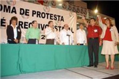 Keywords: Rinden Protesta Raúl Pozos y Adda Luz Ferrer.jpg es Fotografía de toma de protesta de dirigentes del PRI en Campeche own Julio denegri 2009-02-23 otrs Demonstrations and protests in Mexico