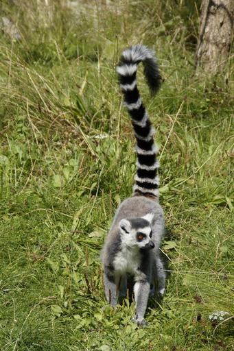 Keywords: ring tailed lemur prosimian lemur catta lemur striped animal mammal ringed tail zoo meadow black and white catta madagascar