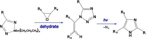 Keywords: Ringformation.svg Reaction where Imidazole is synthesized by the photolysis of 1-vinyltetrazole w file Ringformation gif by user Mogiemilly 2011-04-18 RicHard-59 w file Ringformation gif Inkscape Imidazoles