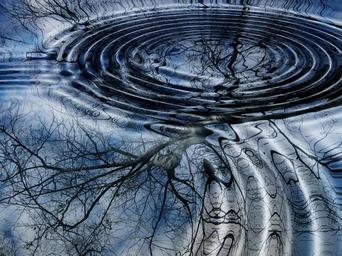 Keywords: rings mirroring water wave lake birch tree winter clouds