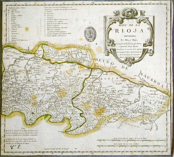 | Keywords: Rioja Geográfica.jpg 1769 in Spain es título Mapa de la Rioja dividida en Alta y Baja con la parte de la Sonsierra que llaman comunmente Rioja Alavesa Construide por las memorias de los naturales Por el Geografo D Tomas Lopez Pensionista de S M de la Academia de S Fernando Madrid Año de 1769 Mapa geográfico de La Rioja Rioja natural del geógrafo Don Tomás López publicado en el año 1769 en Map of La Rioja Spain 1769 Depósito General Topográfico de Ingenieros Creator Tomás López PD-old-100 Uploaded with UploadWizard Maps of La Rioja Spain Old maps of Spain 1769 maps Maps in Spanish Tomás López |