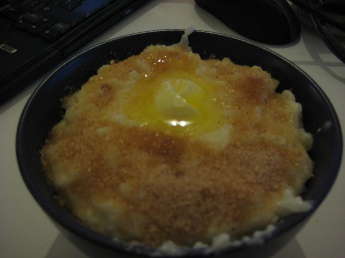 Keywords: Risengroed.jpg Bowl of rice pudding Rice pudding boiled on milk and served with a knob of butter and a sprinkle-mix of sugar and powdered cinnamon is a traditional Christmas food in Denmark The dish is called 'Risengrød' in Danish translating as rice-poridge In previous times a bowl was placed in the attic in December as an offering to calm the supernatural creature called 'Nissen' an unpredictable and often very grumpy creature of Danish and Scandinavian folklore own Taken by myself 2008-01-24 Morten Spleth Heidemann Gregersen Christmas food of Denmark Risengrød |