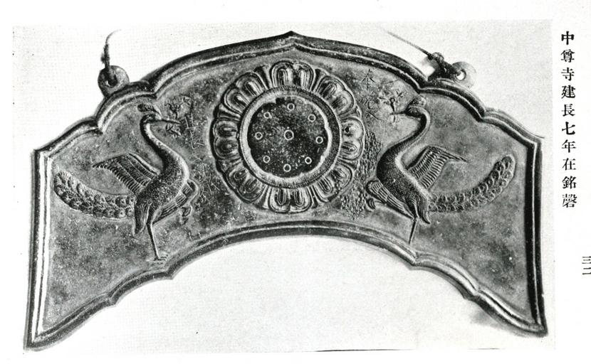 Keywords: RitualGong ACE1250 Chusonji.JPG en Buddhist ritual gong with peacock relief Cast bronze gilt Pair of peacock motif on both sides 1250-01-01 Date incised January 1 1250 Kamakura period 32 5cm wide Chūson-ji Hiraizumi Iwate Japan ASUKAEN ed TOYO-BIJYUTU 6rd vol 1930 July Anonymus ACE1250 Photo ASUKAEN editor 1930-07-10 RitualGong ACE1250 Chusonji crop jpg RitualGong_ACE1250_Chusonji_Rubbing JPG PD-Japan-oldphoto Metalwork of the Kamakura period National Treasures of Japan crafts |