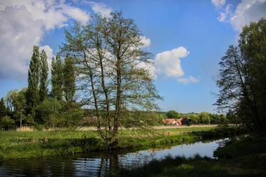 Keywords: River bank into agriculture landscape. summer urban skye public clouds river free bank land agriculture domain