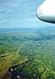 | Keywords: River in Mongolia.jpg en A Mongolian river with large boulders and relatively high flow rates splits into numerous branches furcations or white water With every flood the barren sands between the branches of the river are shifting de Ein Fluss in der Mongolei mit einer hohen Geschiebeführung und noch relativ hoher Fließgeschwindigkeit der sich in zahllose Flussarme zwischen ausgedehnten Sandbänken aufspaltet Diese Furkationen nennt man Umlagerungsstrecken oder auch Wildwasser Bei jedem Hochwasser werden die vegetationslosen Sandbänke verlagert Own T Voekler 1985-07-03 Cc-zero Rivers of Mongolia |