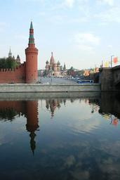 Keywords: river moscow russia water blue sky day time historic city centre reflection kremlin wall arsenal tower clouds reflected red square st basil's cathedral