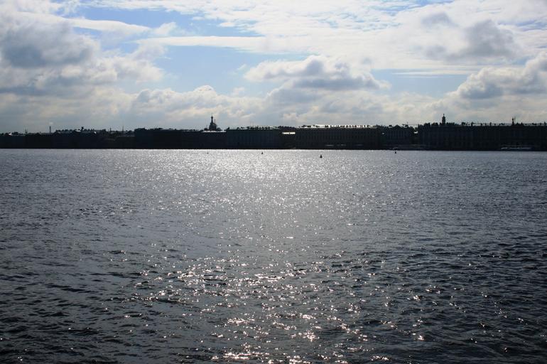 Keywords: river neva great water shimmering shiny vast skyline sky clouds