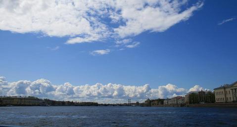 Keywords: river neva water wide sky blue clouds packed horizon white