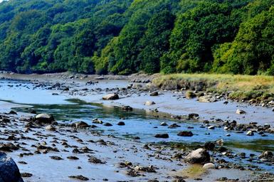 Keywords: river pebbles rock shore water field tree landscape nature finistère brittany france