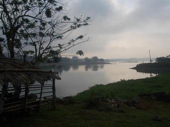 Keywords: river scenery greens water fog scenic outdoor view reflection