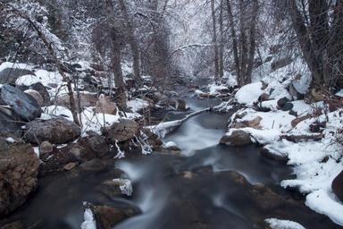 Keywords: river stream water winter snow rocks cold trees forest nature outdoors