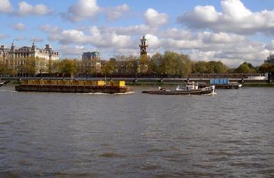 Keywords: river thames tug barge sky clouds thames river london water europe boats britain architecture transportation