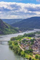 Keywords: river village city bridge clouds mountains water germany hills