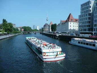 Keywords: river water boat vessel ship waterway tourism cityscape berlin germany