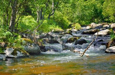 Keywords: river waterfall over summer landscape nature water