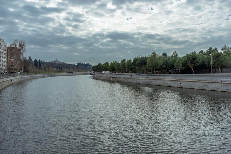 Keywords: rivera river city madrid manzanares bridge europe landscape channel autumn capital water sunset clouds sky urban cities