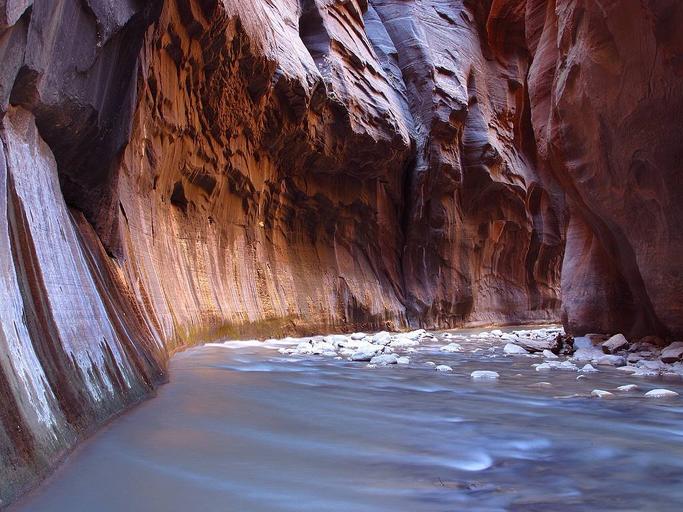 Keywords: riverbed gorge canyon narrow eng zion national park usa utah rock mountains