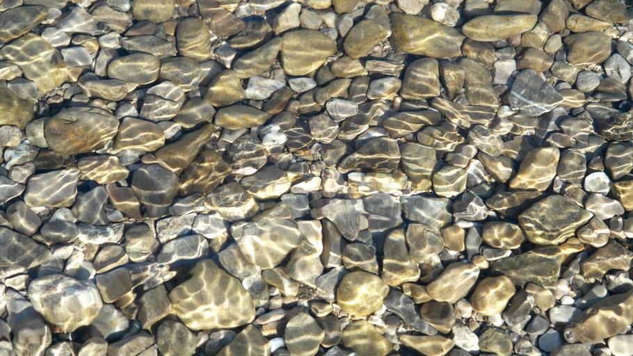 Keywords: riverbed pebbles wave water wet river nature bank pebble stones