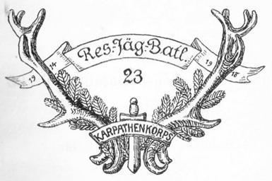 | Keywords: RJB23 – Karpathenkorps.jpg de Karpathenkorpsabzeichen aruond 1918 Walter Holste Die Goslarer Jäger im Weltkriege III Band “ Das Reserve-Jäger-Bataillon Nr 23 ; Hildesheim Buchdruckerei Lax 1934 author - Author wrote the Story but he used and didn't create the photos or pictures before Custom license marker 2013 06 30 Anonymous-EU Uploaded with UploadWizard Reserve-Jäger-Bataillon Nr 23 | ||||