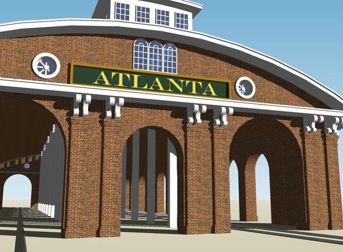 | Keywords: RKO backlot Atlanta railroad depot from Gone With The Wind - alt angle.jpg Other views <gallery> Image RKO backlot Atlanta railway depot from Gone With The Wind jpg </gallery> 2D image exported from a 3D model of a variant of a movie set exterior that once existed until 1976 on the now demolished RKO Studios Forty Acres backlot in Culver City California The model depicts the Atlanta railroad depot as it appeared in the 1939 cinema classic Gone with the Wind The set as constructed was a slightly downsized version as is the 3D model of the actual depot and it was featured prominently in scenes that dramatized events leading to the fall of Atlanta in that film The backlot movie set was an incomplete structure with roofing only on the side which was filmed and with a painted facade simulating the windowed structure along the roofline Own 2008-05 Kipp Teague Gone with the Wind film Film sets RKO Studios Architectural drawings by SketchUp |