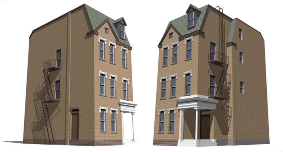 | Keywords: RKO backlot - tall hotel.jpg Other views <gallery> Image RKO backlot - tall hotel elevation jpg </gallery> 2D image exported from a 3D model of a building that once existed until 1976 on the now demolished RKO Studios backlot called Forty Acres This particular building the tallest permanent structure on the backlot was constructed as the feature set for the 1947 feature film The Long Night as the Allegheny House It was seen again in the 1949 film noir classic The Set-Up and later appeared regularly on television's The Andy Griffith Show as Mayberry Hotel It also appeared on Star Trek's episode of Miri in which Captain Kirk and crew find the eponymous character and later when Spock and security are pelted with rocks from the fire escape above The same fire escape which is located on the far side of the structure is seen also in The City on the Edge of Forever where Kirk steals clothes for both he and Spock to blend in with 1930s New York Showing a SW and SE view of the building as it once stood the 3D model was constructed in SketchUp 6 0 in 2008 by Bill Wrigley self made designed in Google Sketchup 6 0 2008-03 Bill Wrigley Film sets RKO Studios Architectural drawings by SketchUp Star Trek The Original Series |