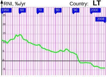 | Keywords: RNI 1950 LT.svg en The w Rate of natural increase in Lithuania 1950 “2008 own Incnis Mrsi 2009-07-13 public domain Image BirthDeath 1950 LT svg This graph visualize the difference between a birth ratehttp //demoscope ru/weekly/ias/ias05 php tim 0 cou 18 terr 1 ind 26 Submit OK and a death ratehttp //demoscope ru/weekly/ias/ias05 php tim 0 cou 18 terr 1 ind 1 Submit OK and nothing more All disclaimers from Image BirthDeath 1950 LT svg apply also to this image Demographics of Lithuania Rates of natural increase |