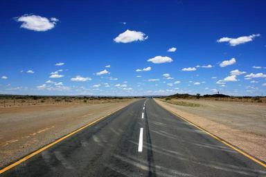 Keywords: road ahead desert never ending road landscape vacation africa blue sky namibia dry summer hot tar seal sealed road