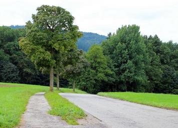 Keywords: road avenue trees away asphalt nature forest