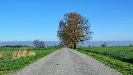 Keywords: road away trees avenue nature wide distant spring landscape bavaria chiemgau holiday recovery meadow green pasture