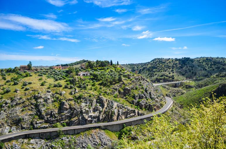 Keywords: road bergstrasse toledo spain mountain road hill summer madrid landscape sky blue wide