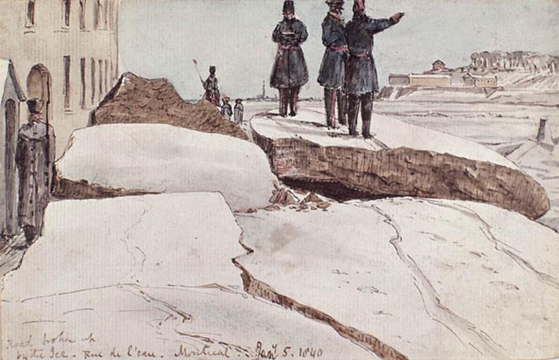 Keywords: Road Broken up by Ice, Rue de l eau, Montreal.jpg en Road Broken up by Ice Rue de l'eau Montreal pen and brown and black ink with watercolour over pencil on wove paper 18 200 x 11 500 cm fr Route détruite par les glaces rue de l'Eau Montréal plume et lavis brun et noir avec aquarelle sur crayon sur papier vélin 18 200 x 11 500 cm 1840-01-05 http //collectionscanada gc ca/pam_archives/index php fuseaction genitem displayItem lang eng rec_nbr 2833565 collectionscanada gc ca Philip John Bainbridge other versions PD-100 Winter in Montreal Montreal in the 1840s Philip John Bainbridge Uploaded with UploadWizard |