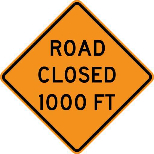 Keywords: Road Closed 1000 Feet sign.svg User Ltljltlj/Template 900 mm by 900 mm 36 in by 36 in Road Closed 1000 Feet sign made to the specifications of the http //mutcd fhwa dot gov/SHSm/warning pdf 2004 edition of Standard Highway Signs sign W20-3 Uses the http //www triskele com/fonts/index html Roadgeek 2005 fonts United States law does not permit the copyrighting of typeface designs and the fonts are meant to be copies of a U S Government-produced work anyway Colors are from http //mutcd fhwa dot gov/kno-colorspec htm Pantone Orange 152 converted to RGB by http //www reeddesign co uk/test/pantone2rgb html W20-3 W20-3 - Road Street Closed with distance SVG road signs in the USA 1000 number |