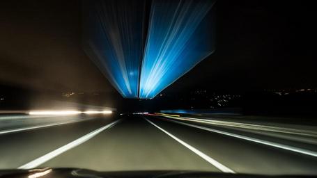 Keywords: road night stelae lights vehicle speed long exposition car highway lane travel signals lead traffic transport asphalt blue signal stripes lines
