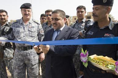 | Keywords: Road Re-opening Ceremony in Baqubah DVIDS112795.jpg en Baqubah Mayor Abdullah Abu Fatima performs ribbon-cutting honors during a road re-opening ceremony in West Baqubah as Iraqi police Ltc Negim executive officer Emergency Action Force 1st Battalion and Mufrak Station chief Col Abdul Ameer observe on Sept 1 2008 The road re-opening established a renewed confidence in local safety against terrorist activities while providing an increase in transit options for Baqubah residents after a closure period of more than one and a half years 2008-09-01 Petty Officer 1st Class Mario Quiroga https //www dvidshub net/image/112795 080901-N-+++++-049 2008-09-03 16 57 FORWARD OPERATING BASE WARHORSE IQ PD-USGov-Military-Navy Forward Operating Base Warhorse Images from DoD uploaded by Fæ |