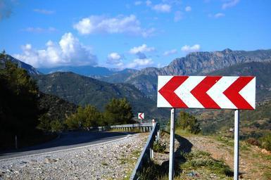 Keywords: road sign attention mountain country side