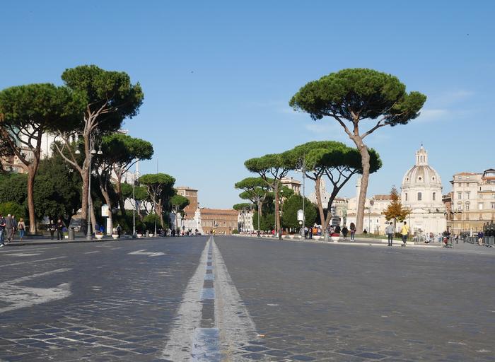 Keywords: road street avenue trees landscape city rome empty street stones pavers via