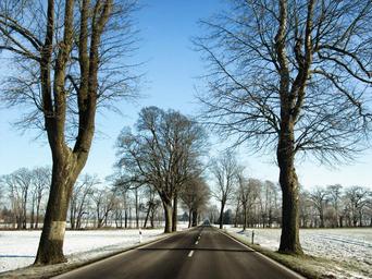 Keywords: road tree lined avenue winter brandenburg landscape snow