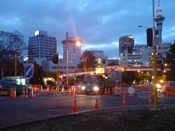 | Keywords: Roadworks At Princes Street, Auckland.jpg Looking westwards along Wellesley Street East from the intersection with Princes Street in Auckland New Zealand Work on signalising this intersection is ongoing to improve pedestrian crossing facilities and remove a slightly odd turn arrangement for right turns into Princes Street To my understanding this is partly because a slight but crucial mis-location of the pedestrian bridge means seen just behind that most users ignore it and cross at grade self-photographed 2010 Uploader -36 8527865 174 7675869 Photos taken by Ingolfson 2010 in New Zealand Roadworks in New Zealand Construction sites in Auckland Traffic signals in New Zealand Wellesley Street Auckland Remote views of the Sky Tower Footbridges in Auckland Red and white stripe traffic cones Keep left road signs in New Zealand Night in Auckland Traffic cones in New Zealand |