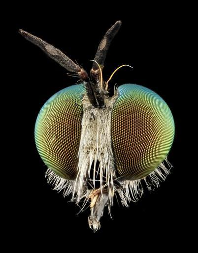 Keywords: bug bugs fly flies animal animals animalia arthropod arthropods arthropoda insect insects insecta diptera orthorrhapha brachycera asiloidea robber fly robberfly robber flies robberflies asilidae biml usgs droege zerene stacker zerenestacker stackshot ommatidia optics lens lenses eye eyes compound eyes compoundeyes usgsbiml black background The head of a very small robber fly, how wonderful to see up close the insect solution to vision, Beltsville, Maryland The head of a very small robber fly, how wonderful to see up close the insect solution to vision, Beltsville, Maryland