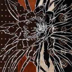 Keywords: Robert Kushner. Night blooming cereus XXII. Sugar lift aquatint on antique Japanese kimono silk art-call Artistically