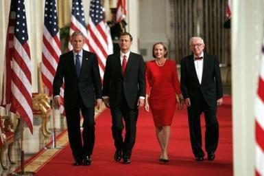 | Keywords: Robertsoath2.jpg President George W Bush walks with Judge John Roberts his wife Jane Marie Sullivan Roberts and Associate Justice John Paul Stevens to the East Room of the White House Thursday Sept 29 2005 where Judge Roberts was sworn in as Chief Justice of the United States White House photo by Paul Morse Imagem http //www whitehouse gov/news/releases/2005/09/images/20050929-3_p092905pm-0121jpg-1-515h html PD-USGov George W Bush in 2005 20050929 John Roberts 20050929 Photographs by Paul Morse White House in 2005 John Paul Stevens |
