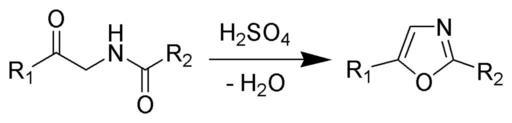 | Keywords: Robinson-Gabriel Synthesis Scheme.png Reaction scheme of the Robinson-Gabriel synthesis Author date of creation selfmade by ~K 30 October 2005 Source - Copyright Public domain PD Comments high-resolution b/w PNG; ChemDraw / The GIMP Organic name reactions 2005-10-31 own assumed ~K |