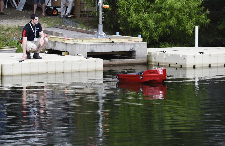 | Keywords: RoboBoat 150710-N-PO203-290.jpg en 150710-N-PO203-290 VIRGINIA BEACH Virginia July 10 2015 An autonomous surface vehicle AUV from Temple University in Philadelphia leaves the dock during a practice run for the 2015 International RoboBoat Competition held in Virginia Beach Va During the event sponsored by the AUVSI Foundation and Office of Naval Research student teams race ASVs of their own design through an aquatic obstacle course U S Navy photo by John F Williams/Released 2015-07-10 Master Chief Petty Officer John Williams https //www dvidshub net/image/2055593 150710-N-PO203-290 2015-07-11 06 03 VIRGINIA BEACH VA US PD-USGov-Military-Navy Office of Naval Research Images from DoD uploaded by Fæ |