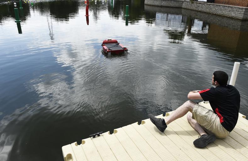 | Keywords: RoboBoat 150710-N-PO203-304.jpg en 150710-N-PO203-304 VIRGINIA BEACH Virginia July 10 2015 An autonomous surface vehicle AUV from Temple University in Philadelphia leaves the dock during a practice run for the 2015 International RoboBoat Competition held in Virginia Beach Va During the event sponsored by the AUVSI Foundation and Office of Naval Research student teams race ASVs of their own design through an aquatic obstacle course U S Navy photo by John F Williams/Released 2015-07-10 Master Chief Petty Officer John Williams https //www dvidshub net/image/2055594 150710-N-PO203-304 2015-07-11 06 03 VIRGINIA BEACH VA US PD-USGov-Military-Navy Office of Naval Research Images from DoD uploaded by Fæ |