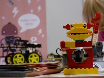 Keywords: robot lego red a smile child fun